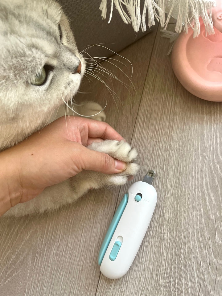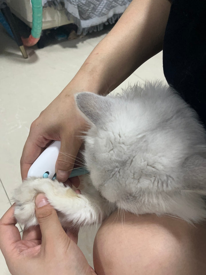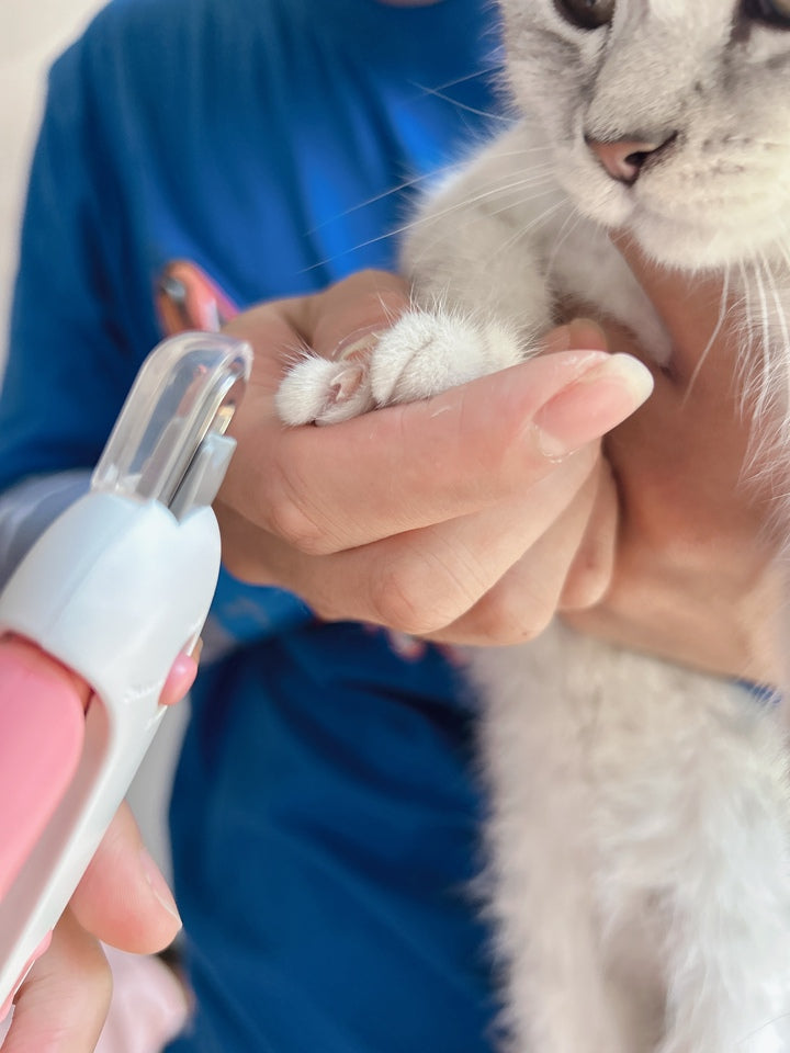 Sau khi cắt, bạn có thể nhẹ nhàng rút giũa ra để mài nhẵn đầu móng cho bé mèo, tránh sắc bén gây trầy xước.
