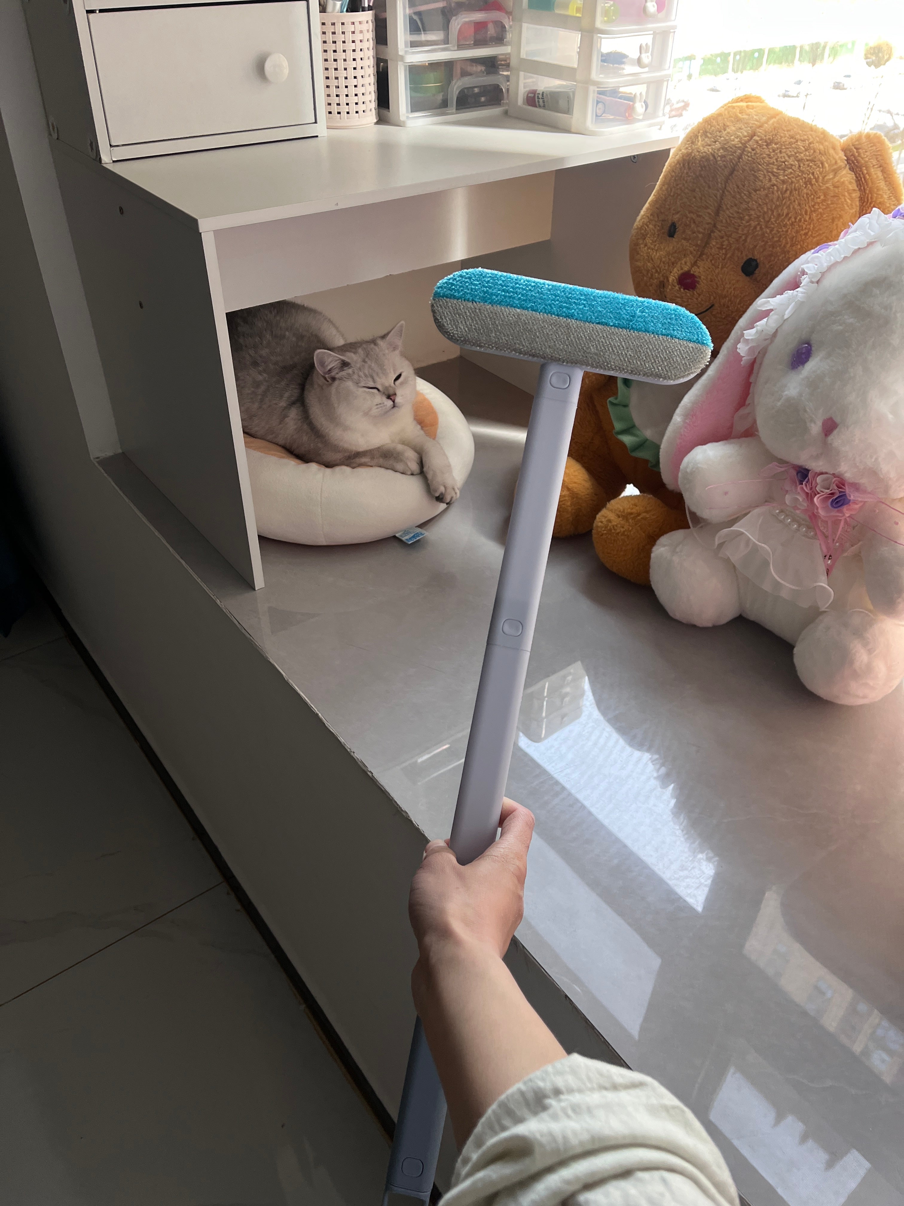 Mặt sau của bàn chải có thể làm sạch các bề mặt kính trong không gian của gia đình