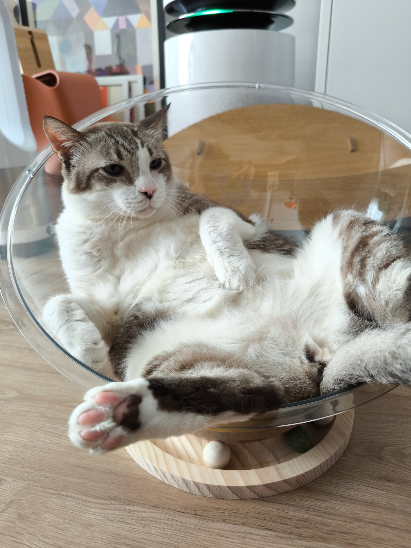 Tích hợp đồ chơi bi quay Trackball giúp mèo vận động nhẹ nhàng, không còn cảm giác buồn chán khi ở nhà một mình.